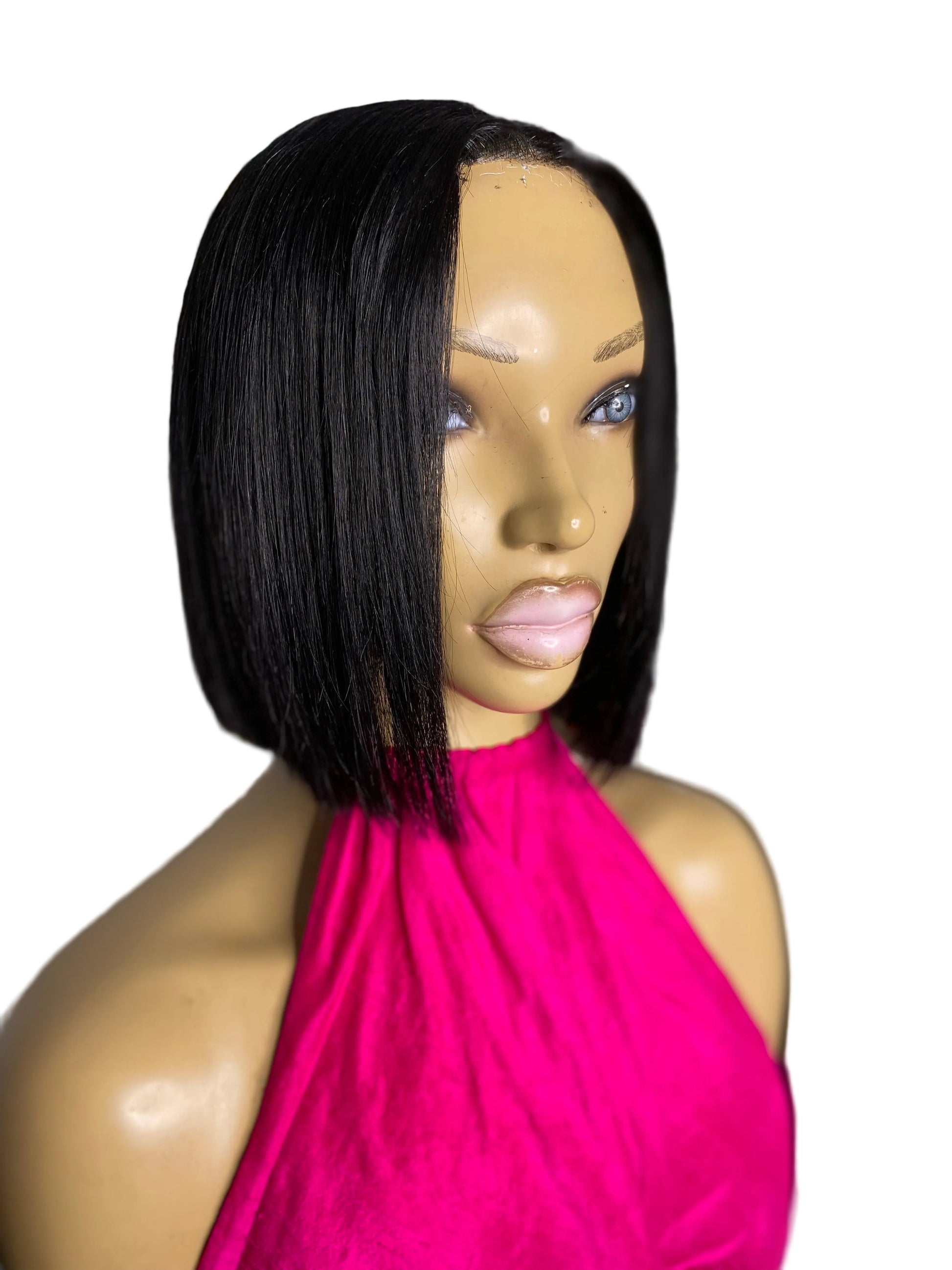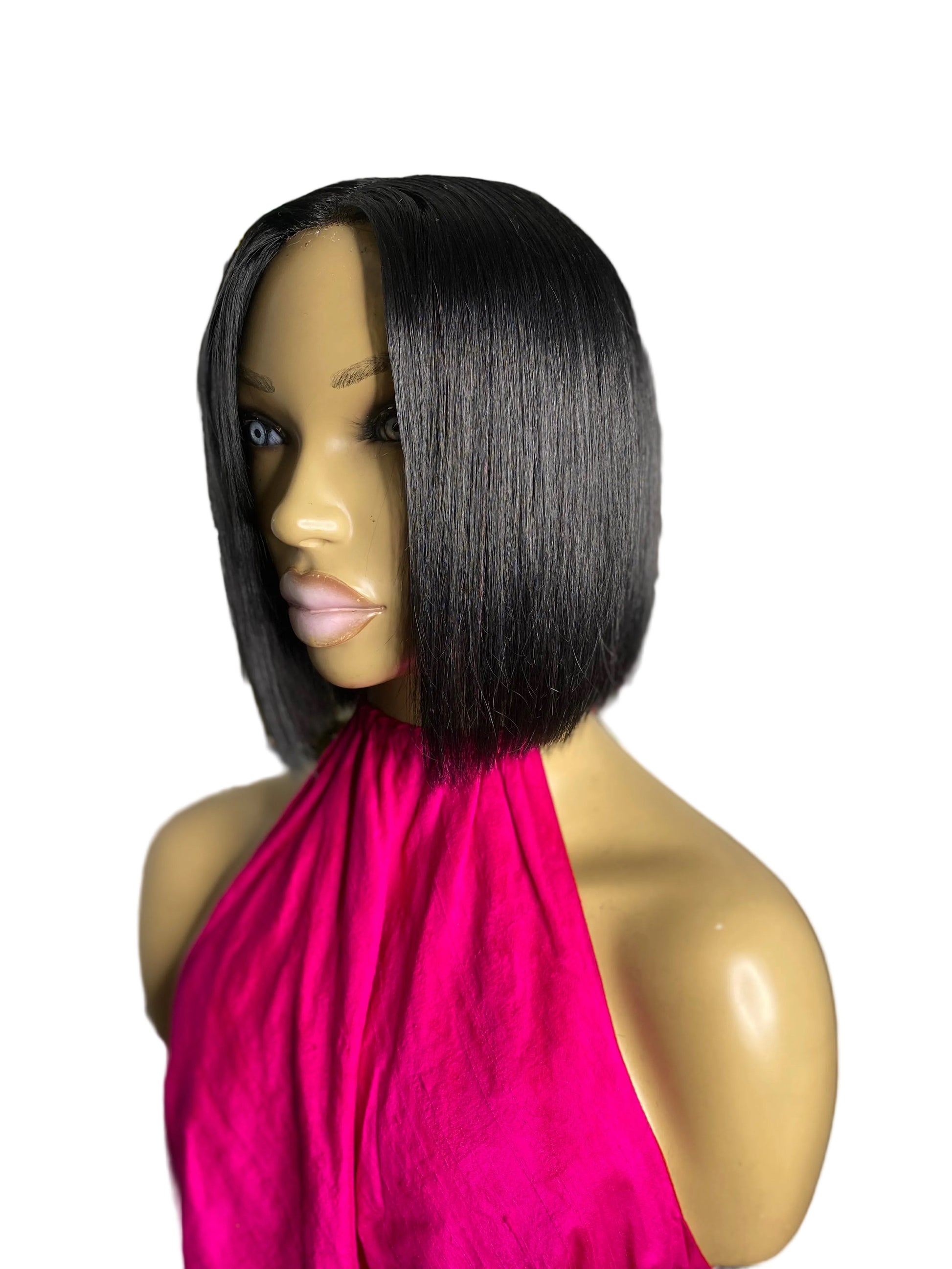 MEGAN Quick Weave "Topper" Bob cut 8x10 Black #1 with 2x6 Middle closure for Short Hair, Thinning Crown,hair loss made with 100% human hair, bonding glue on a breathable stretchy cap, with or without clips and bonding glue, sew down, double sided tape, adhesive spray or both for extra hold, Easy to attach and remove.. Clip on & Go!