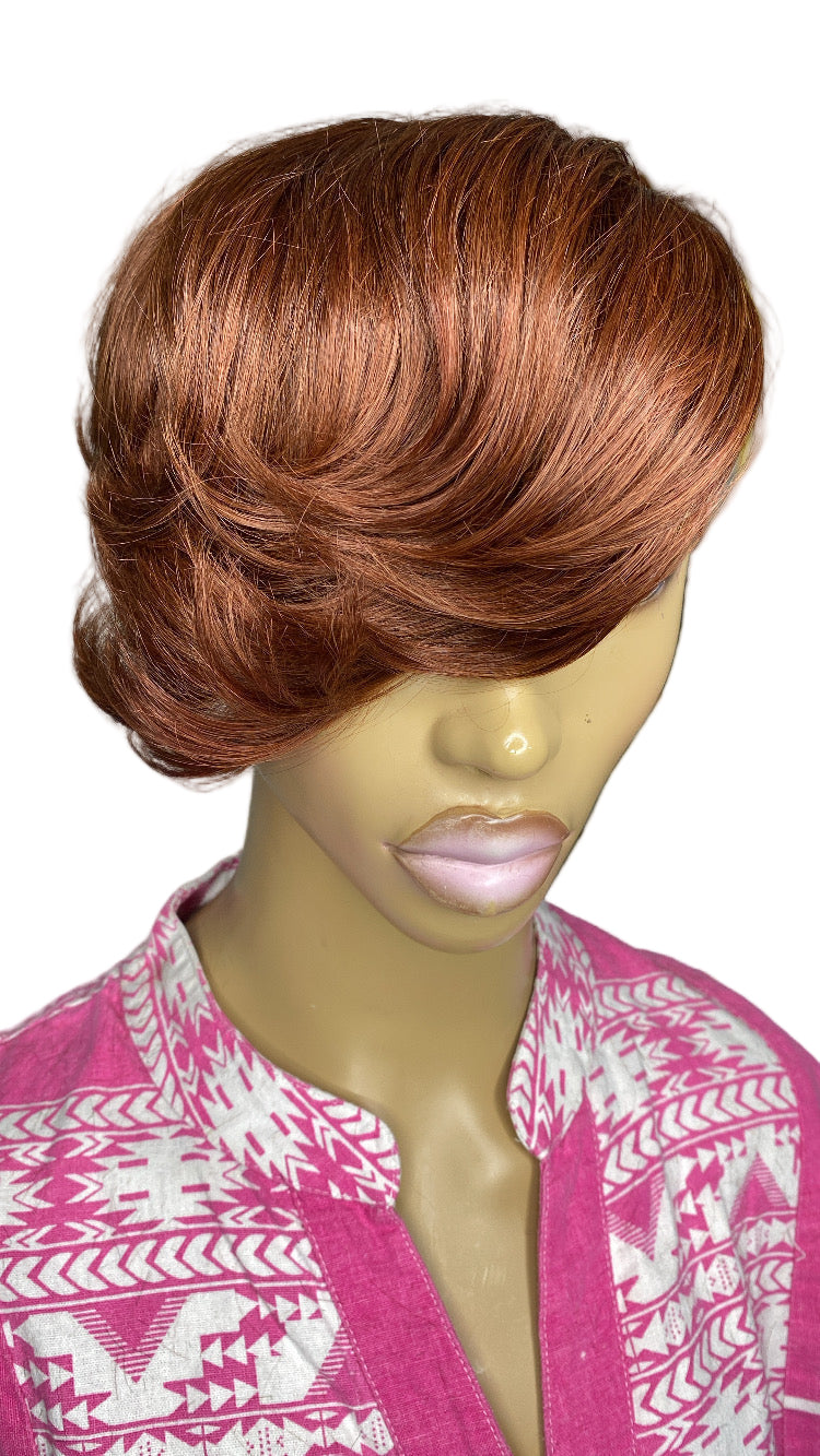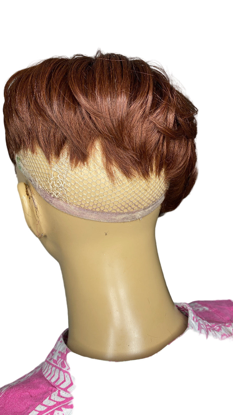 quickweavetoppersbysharon CLOVER Quick Weave "Topper" Pixie Color: #33 for women with short hair, thinning crown, hair loss or just switch it up.. made with 100% human hair on a stretchy breathable, cap, Adhesive (bonding glue) and clips to hold securely in in place, can order without clips and use adhesive spray, double sided tape or both for extra hold blends with your hair