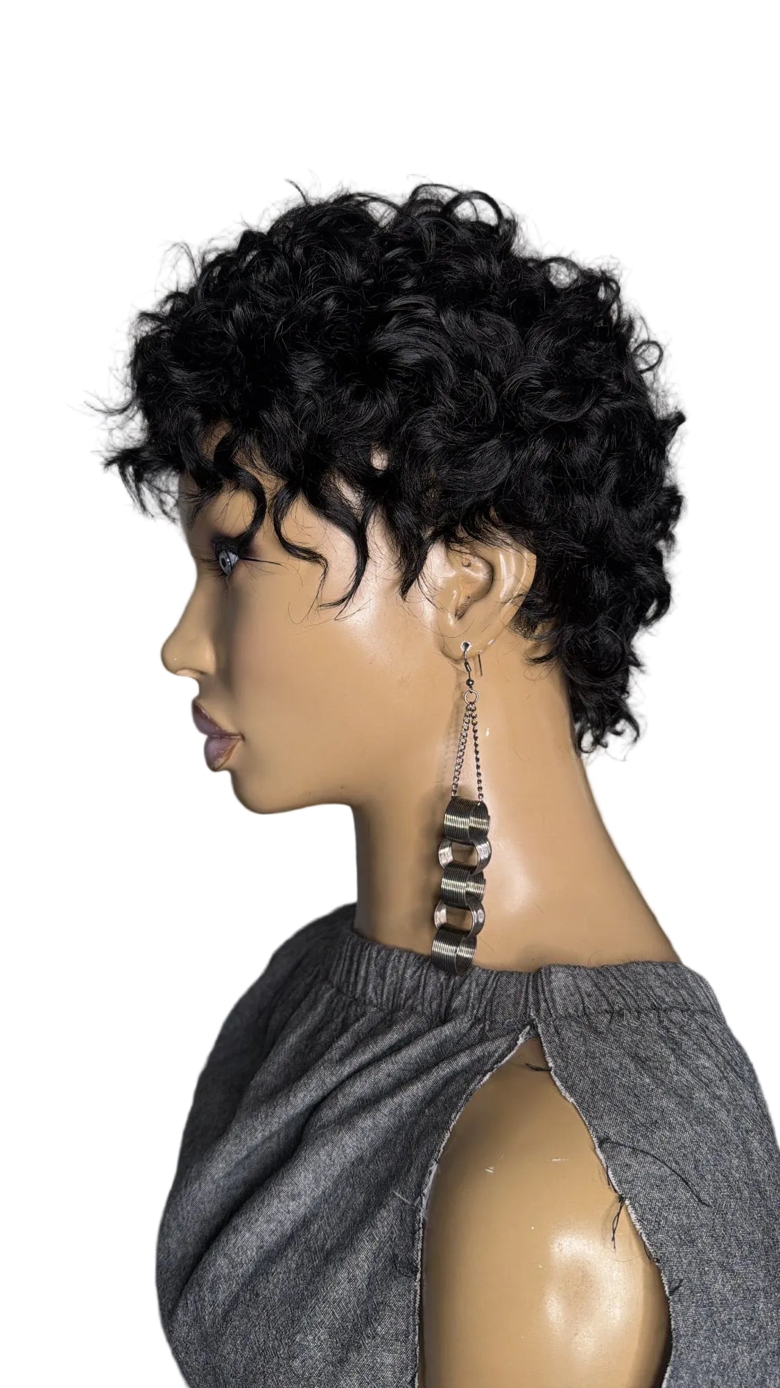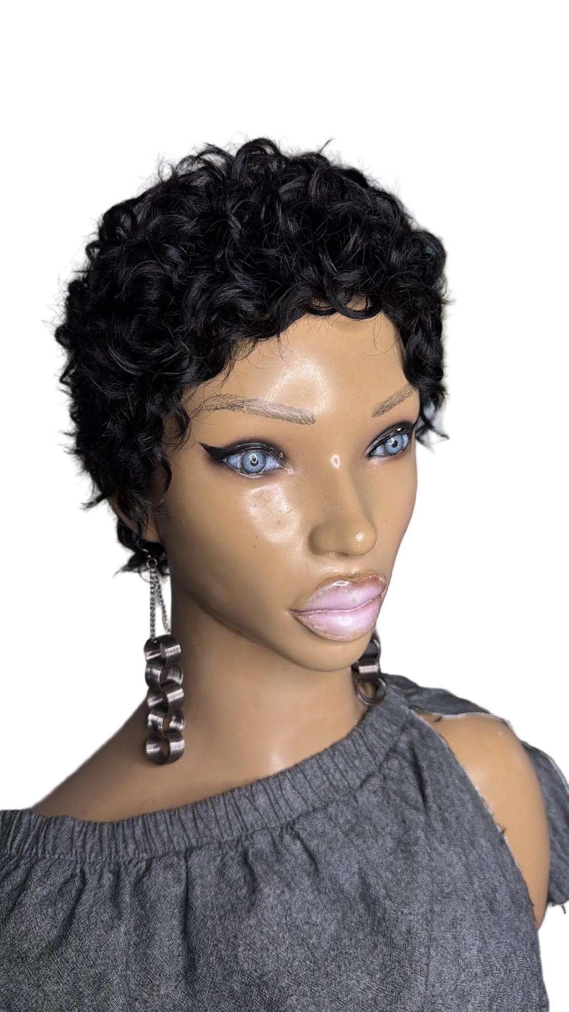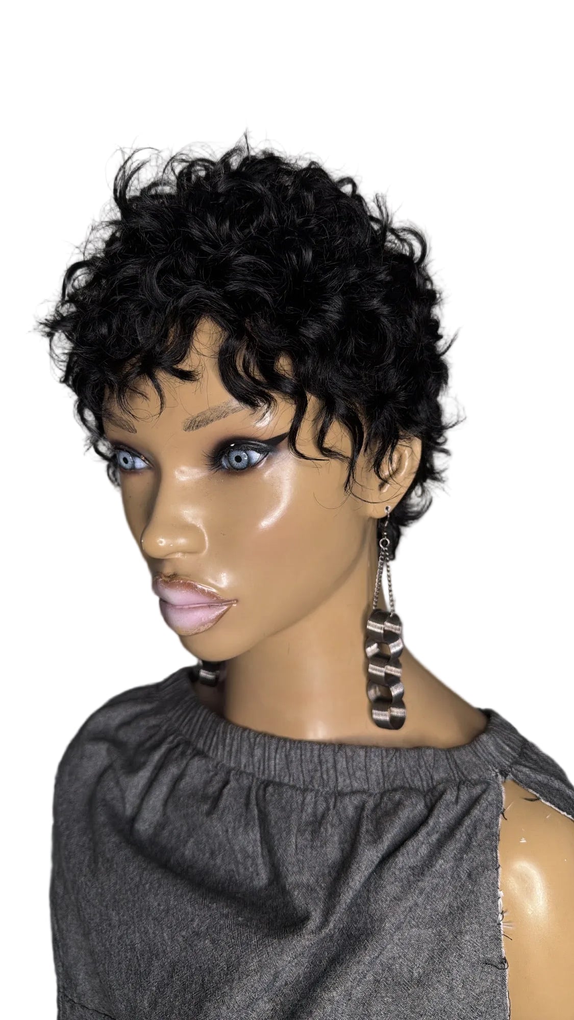 INDI Quick Weave "Topper" Curly Pixie full coverage front to back, standard size 22" head (1standard size) for Alopecia complete hair loss (bald) And short hair 1/2 inch to 1 inch to hold clips. Made with 100% human hair on a stretchy breathable cap with or without clips (specify when ordering) can be: bonded down, taped down, or sprayed down with adhesive spray.. Little to no maintenance.. clip on, add a little mousse or foam and GO! Perfect for vacation (can get wet will curl back up) or as a bad hair day back up.. whatever you need it for we got you, get yours today