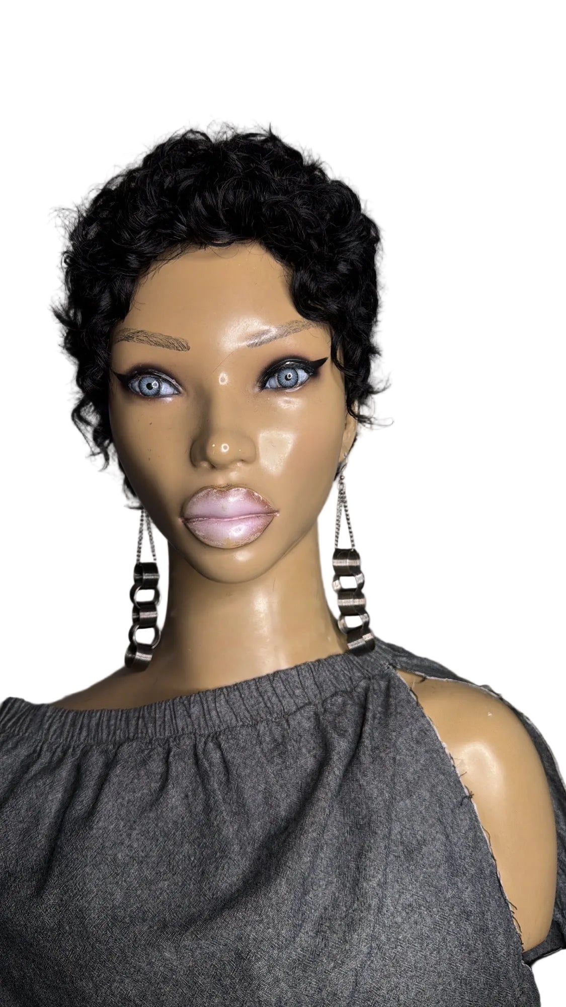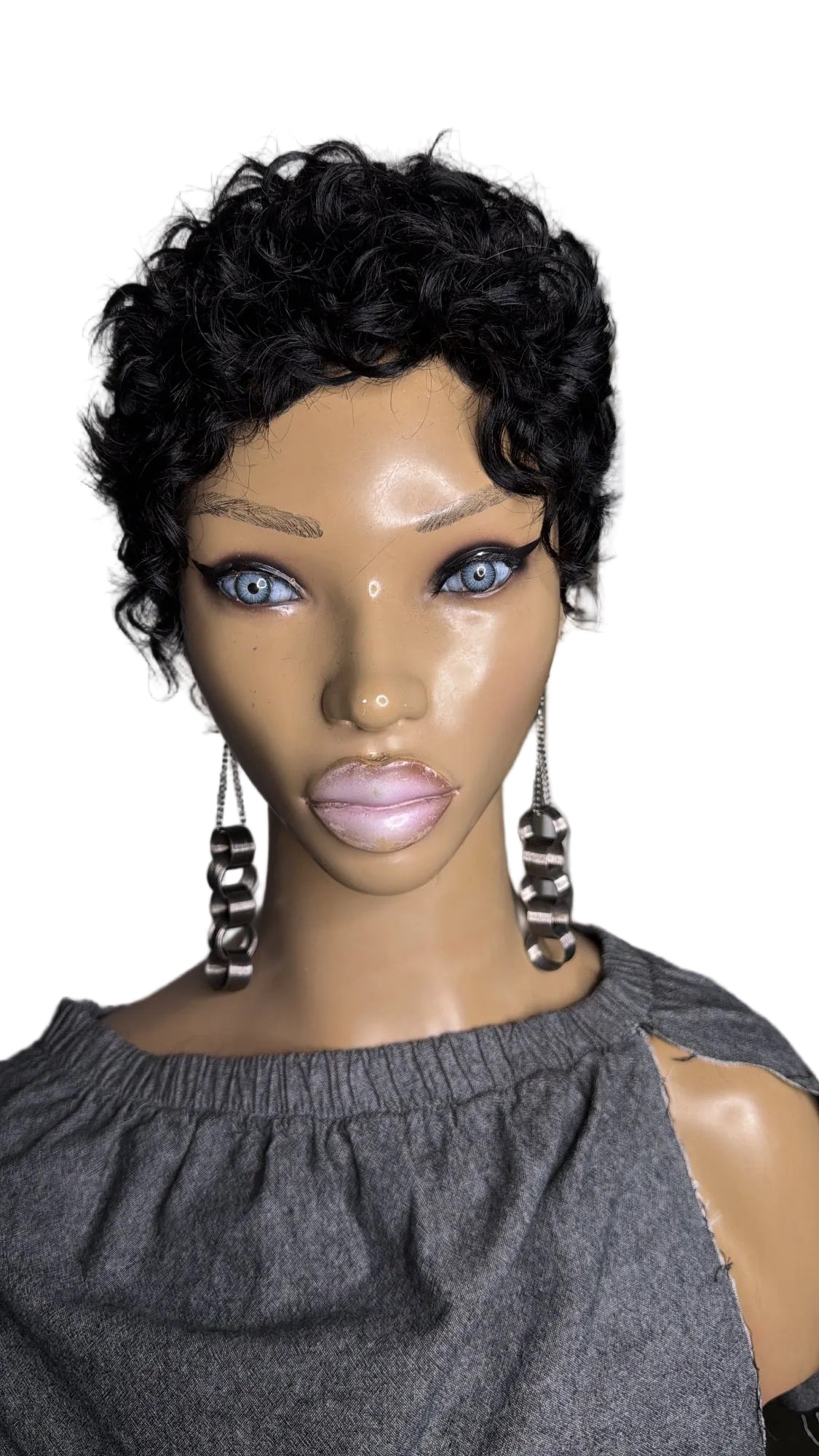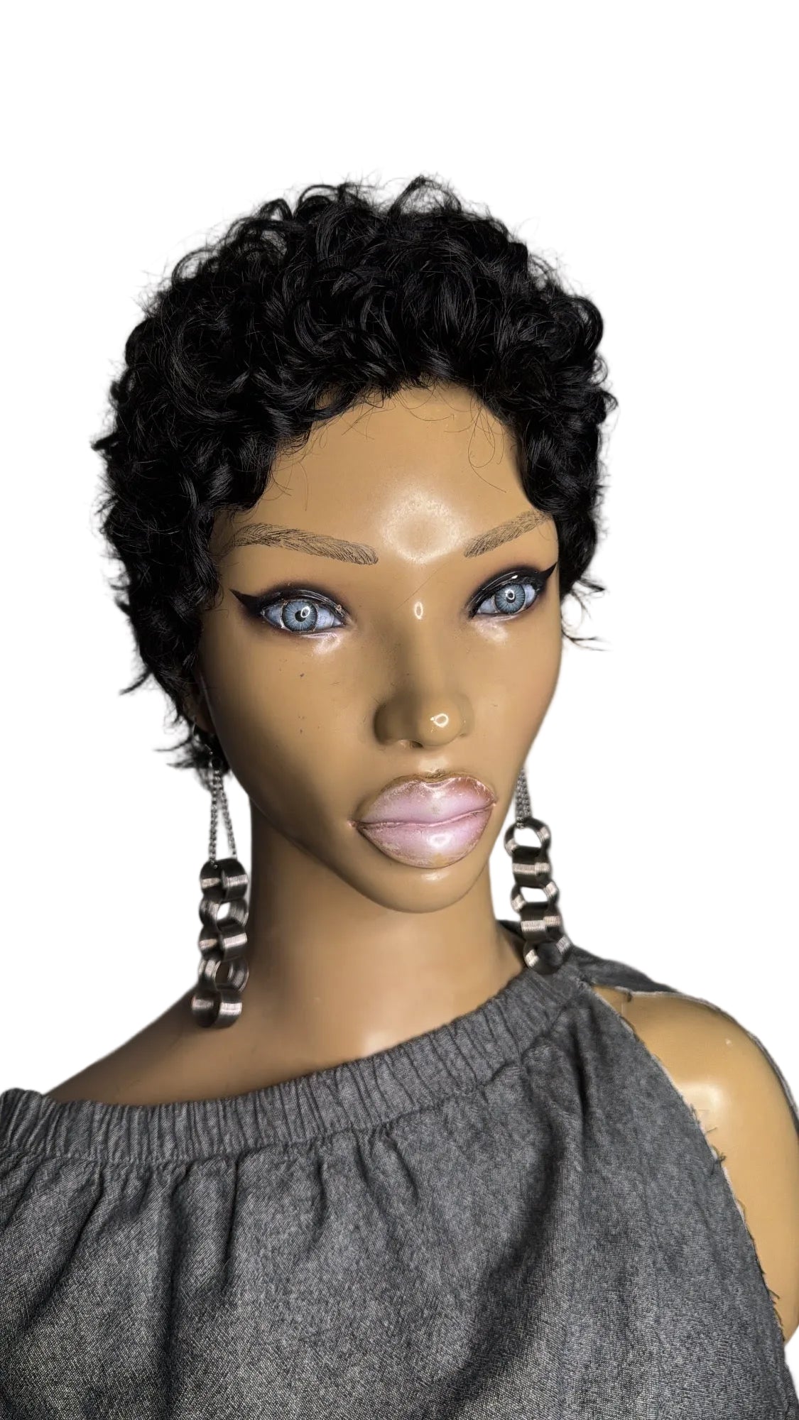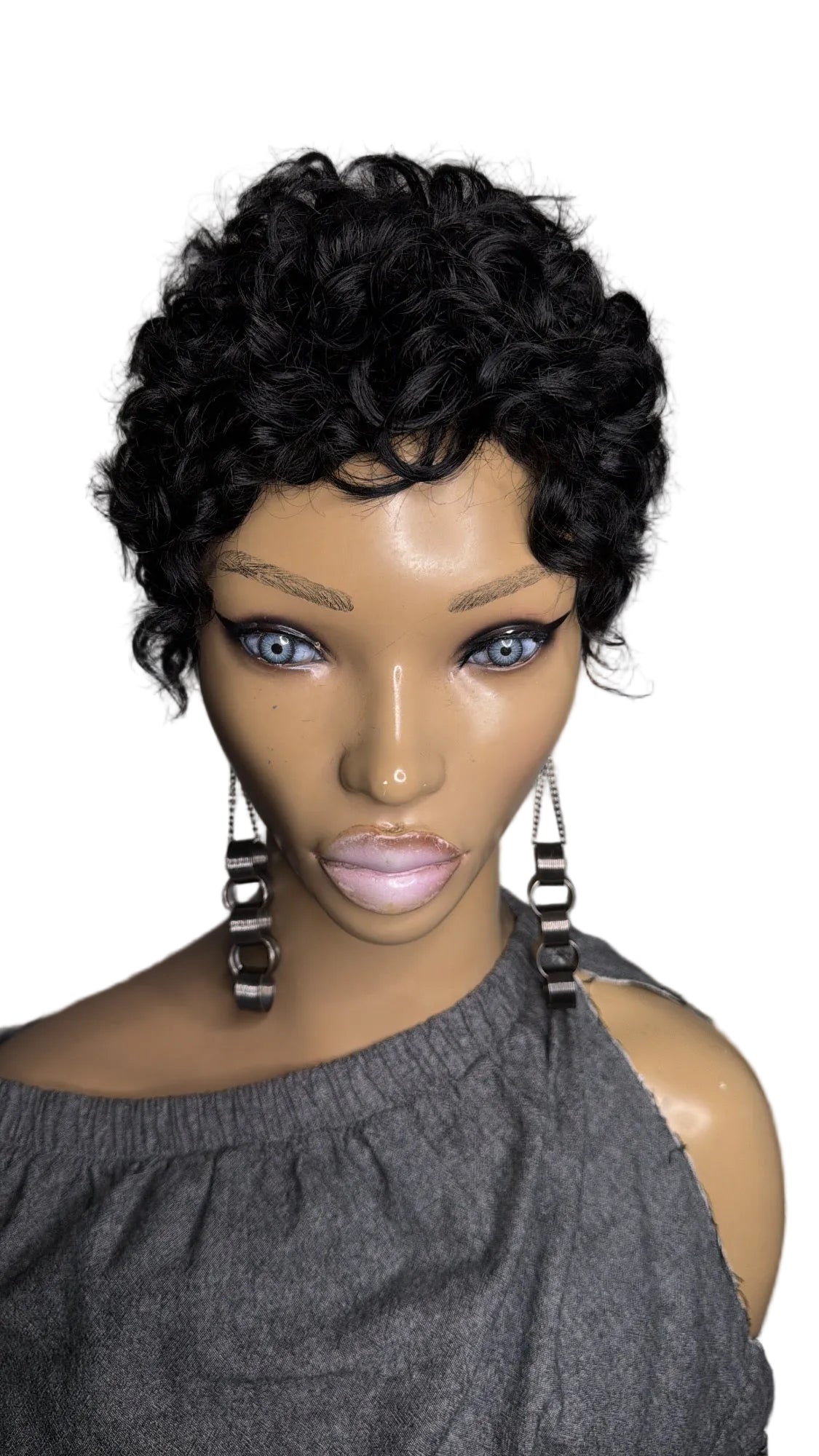 INDI Quick Weave "Topper" Curly Pixie full coverage front to back, standard size 22" head (1standard size) for Alopecia complete hair loss (bald) And short hair 1/2 inch to 1 inch to hold clips. Made with 100% human hair on a stretchy breathable cap with or without clips (specify when ordering) can be: bonded down, taped down, or sprayed down with adhesive spray.. Little to no maintenance.. clip on, add a little mousse or foam and GO! Perfect for vacation (can get wet will curl back up) or as a bad hair day back up.. whatever you need it for we got you, get yours today