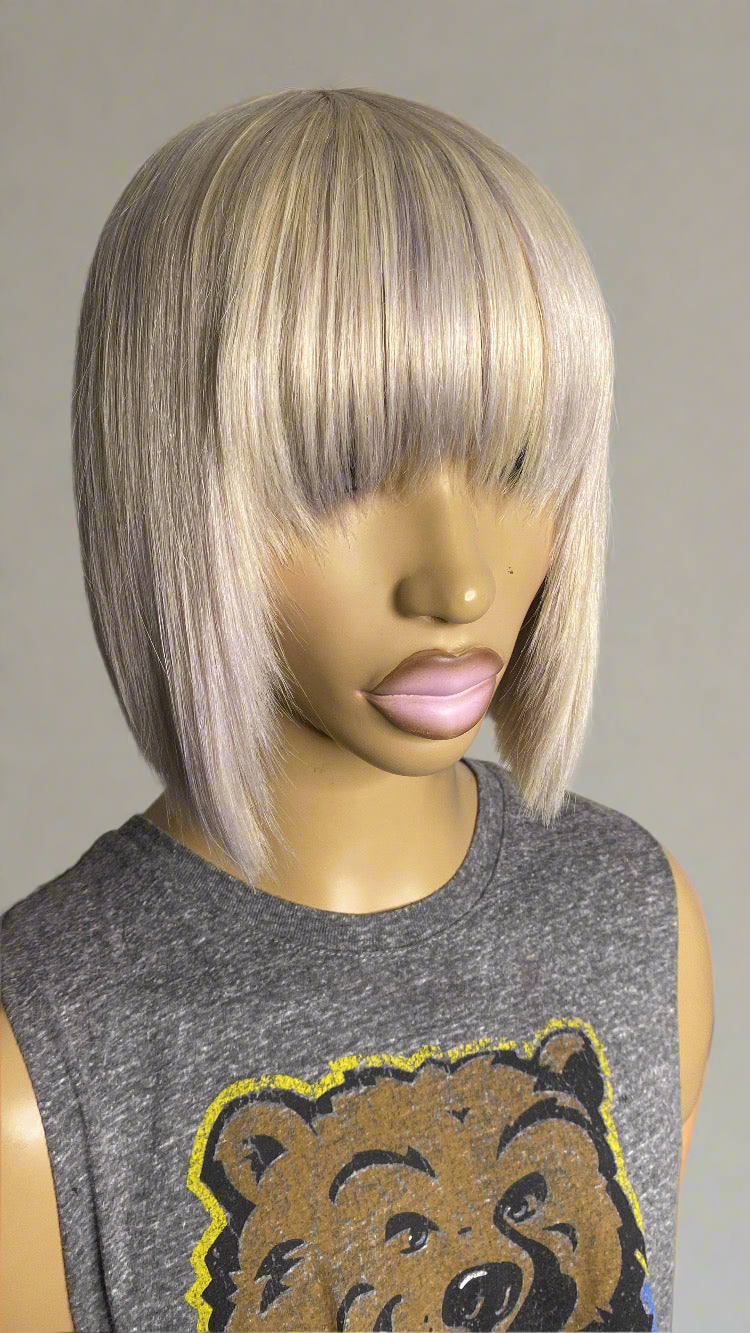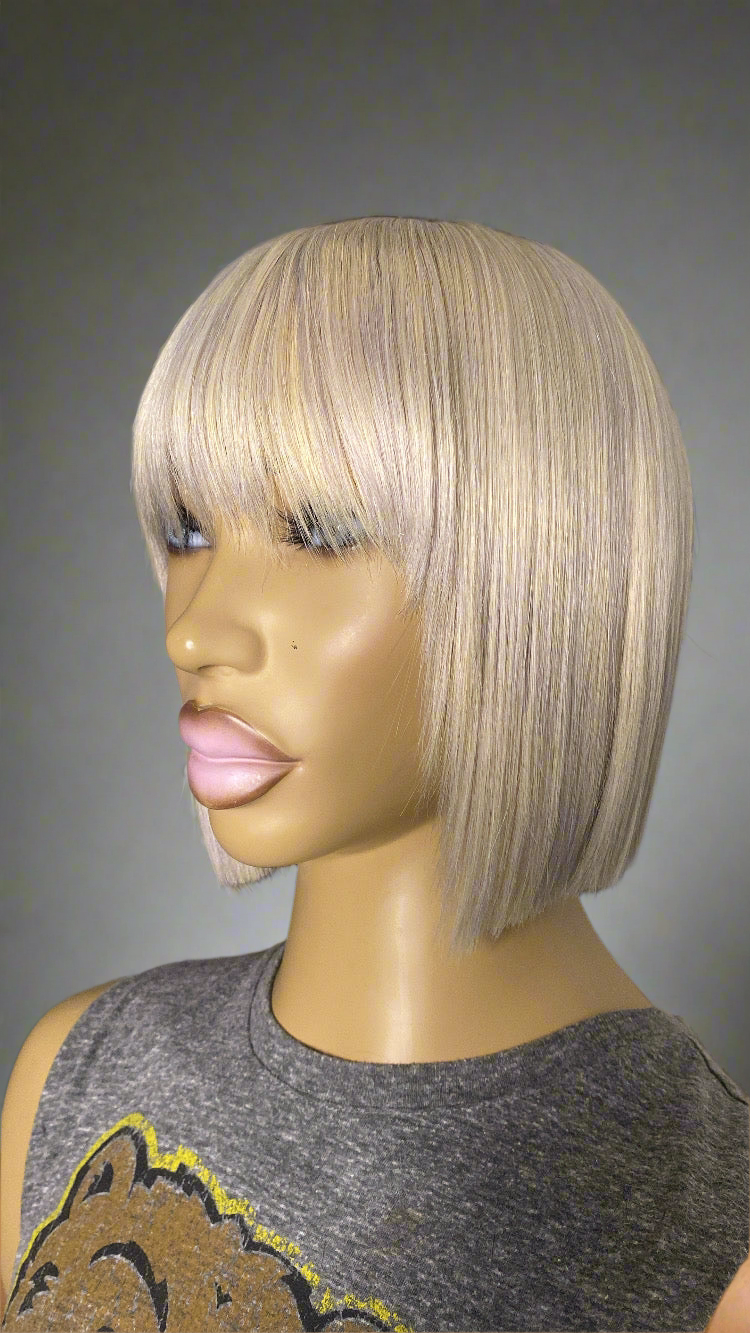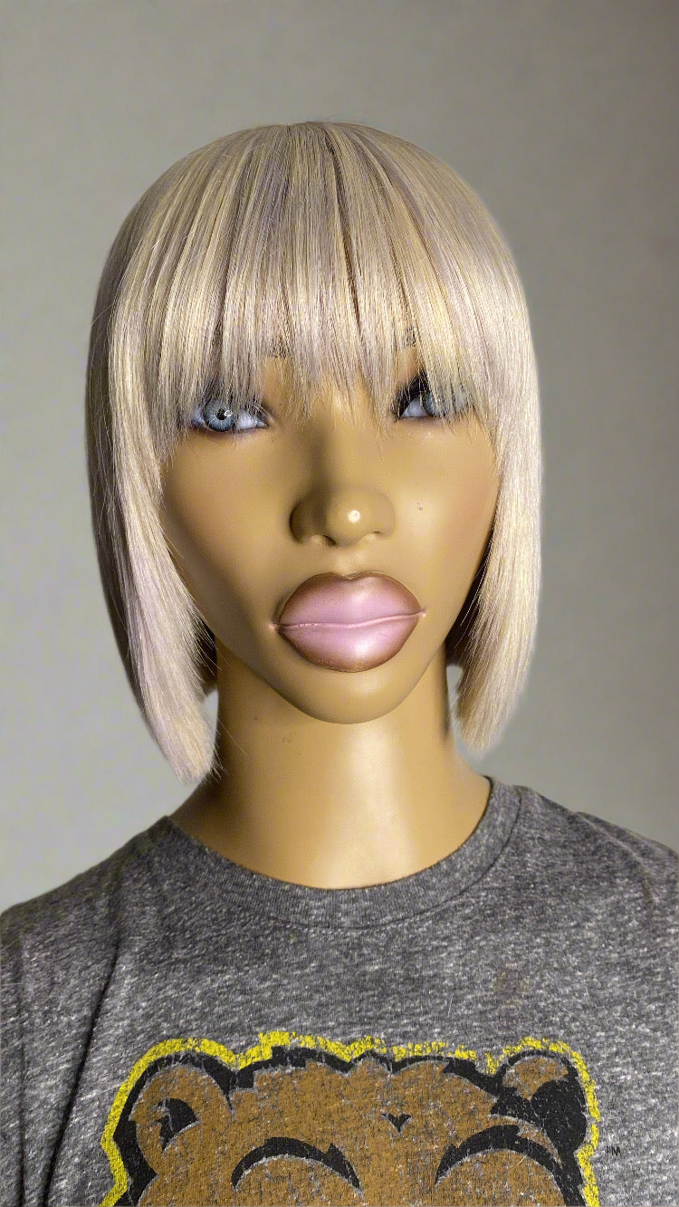 MARLIE Quick Weave "Topper" 8x8, 12in. Bob Cut #613 (Toned) For Women with short hair, thinning crown, hair loss (Alopecia) made with 100% human hair (yak straight) with or without clips can also use Double-Sided Tape Easy to attach and remove