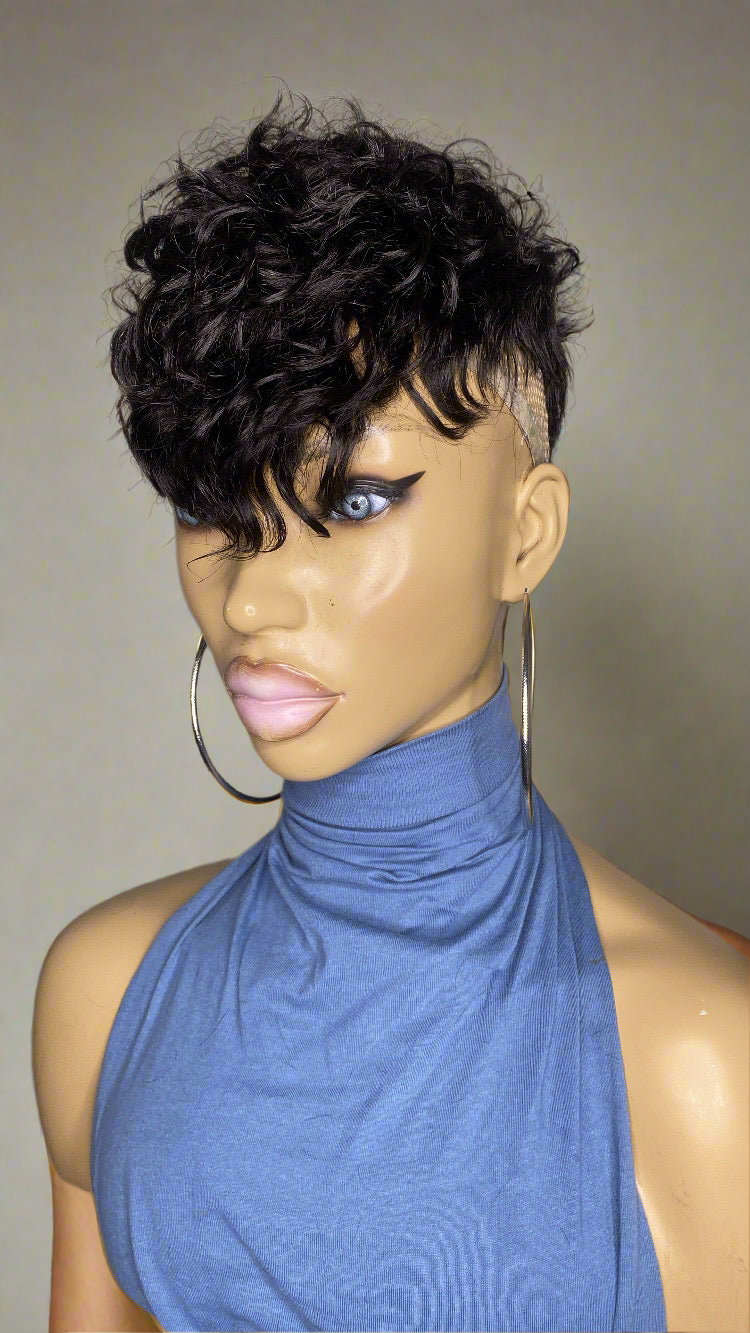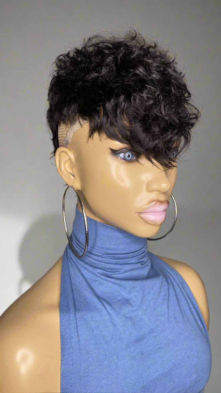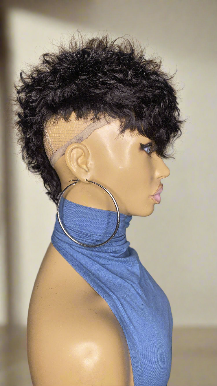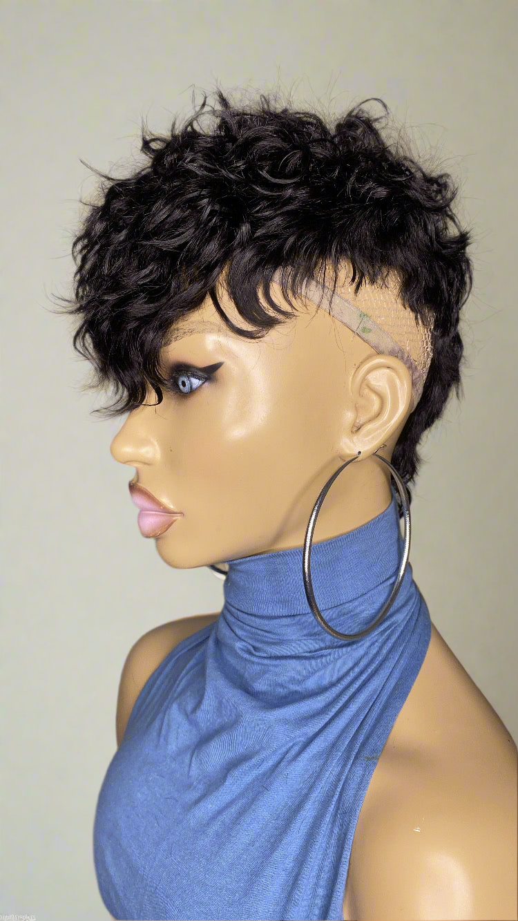 SANTANA Quick Weave "Topper" Curly Mohawk Pixie W8 x L11 Black #1 for Women with short hair, hair loss or switch it up made with 100% human hair on a breathable stretchy material, bonding glue and clips to hold securely in place-can order without clips and use double sided tape tape or bonding glue, easy to attach and remove Great as a back up, switch up, or even vacation It's definitely a game changer... Order yours today!