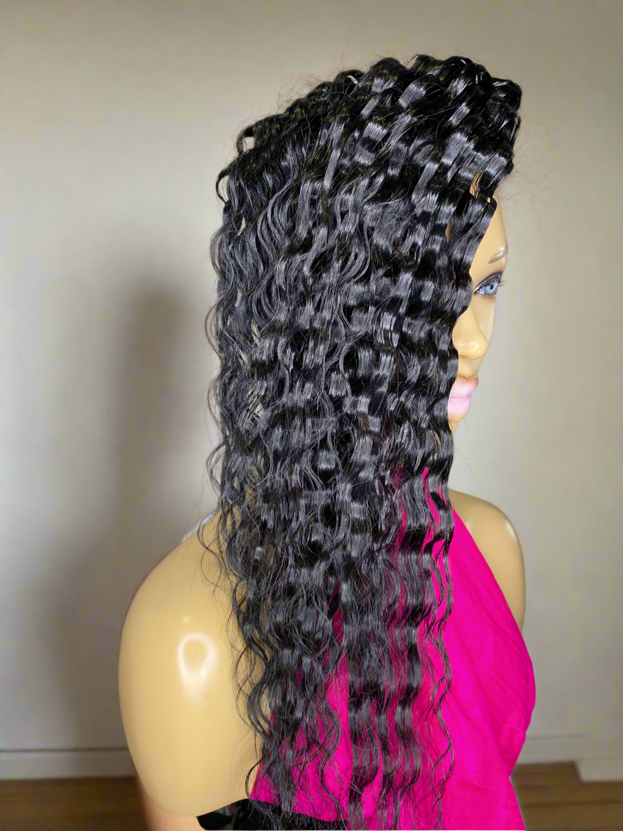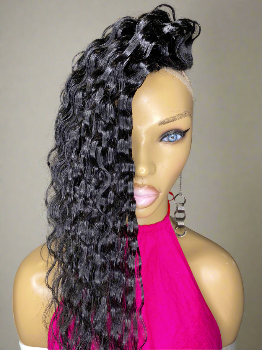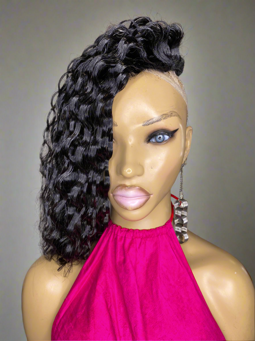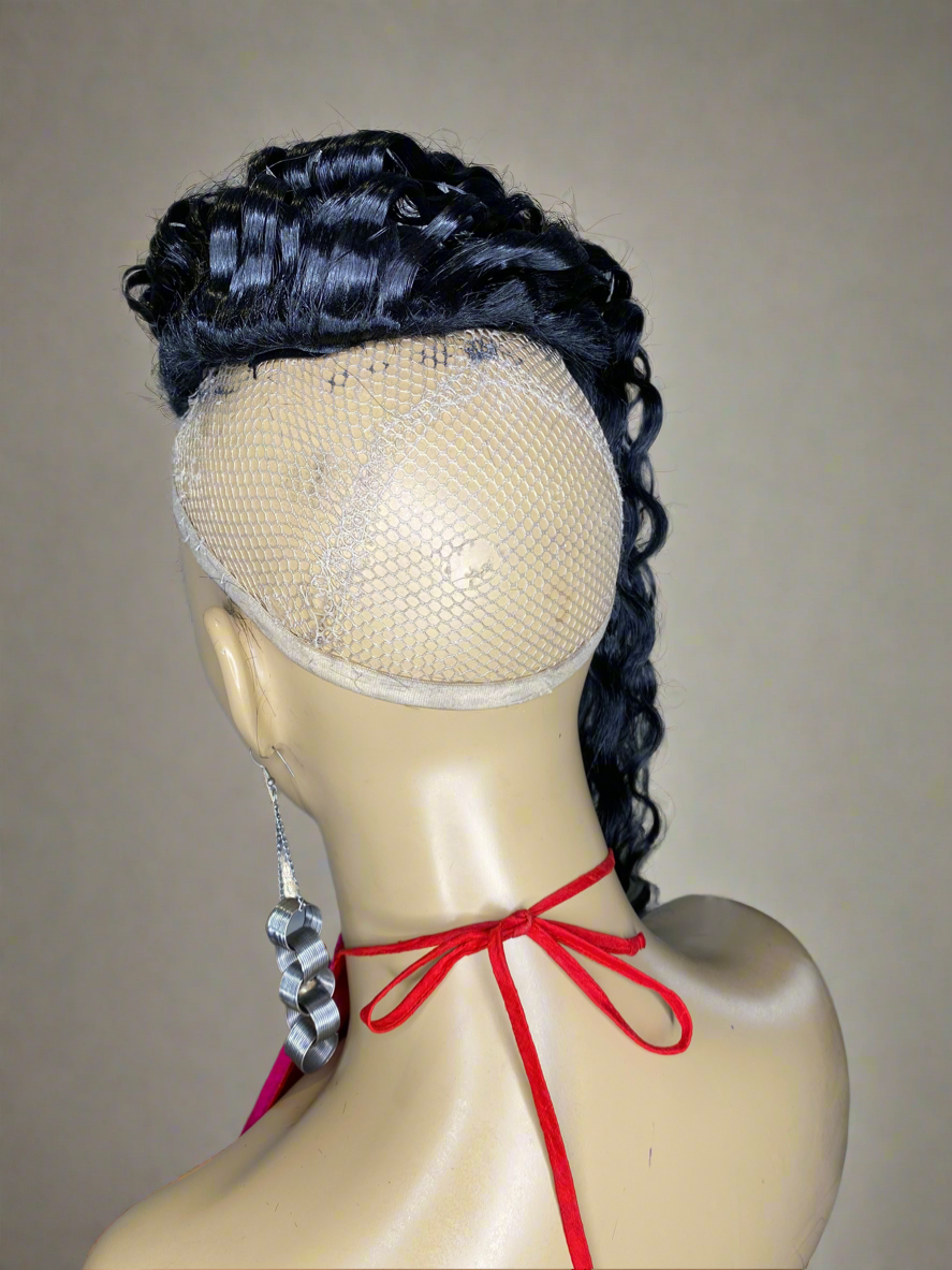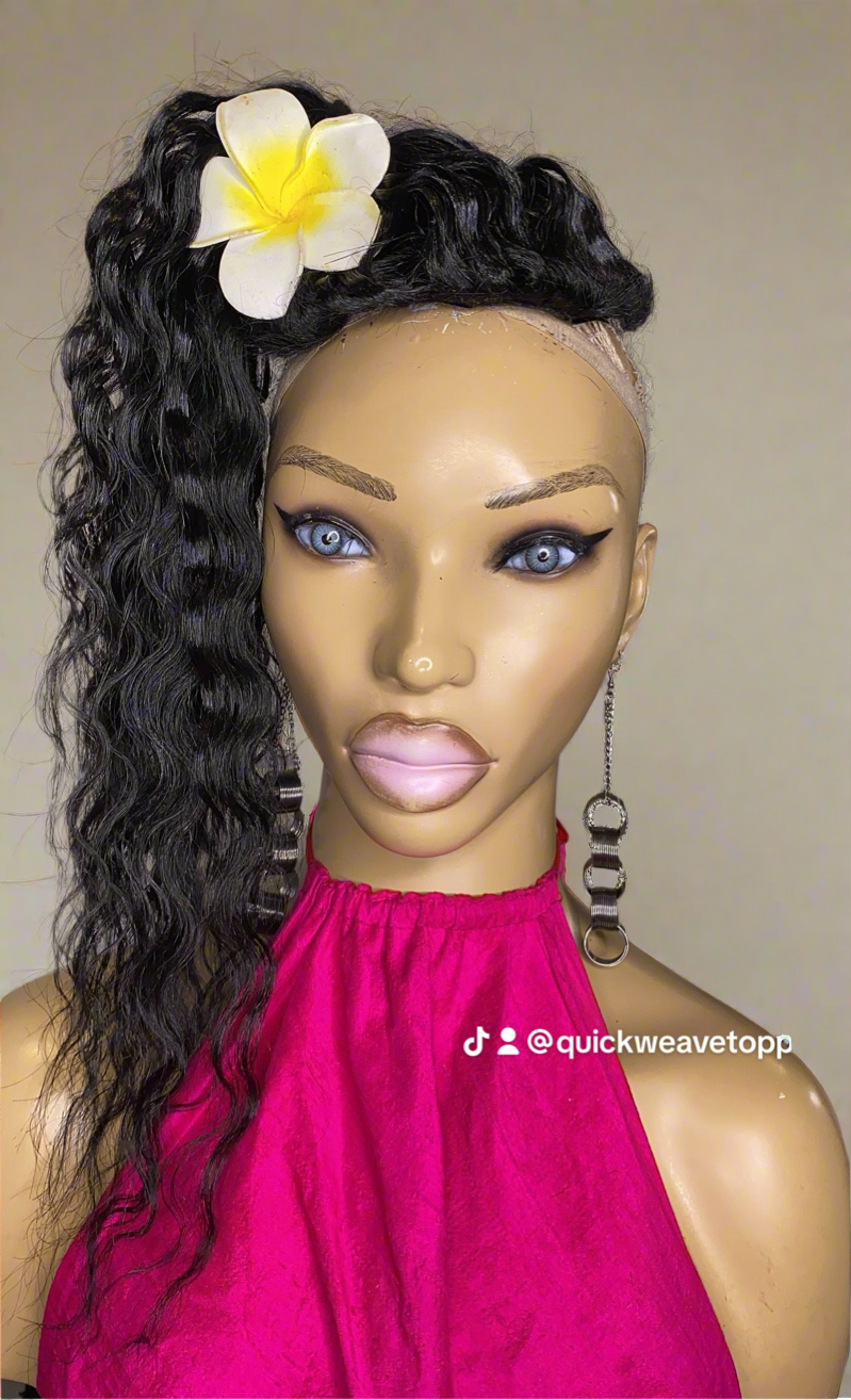 PARKER Quick Weave "Topper" Crimped, 8x8, 20 inch Black #1 for women with short hair and hair Loss made on a stretchy breathable Material with Bonding glue and clips to hold securely in place easy attach and remove can order without clips and use double sided tape, or bonding glue