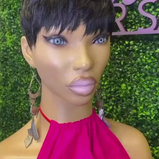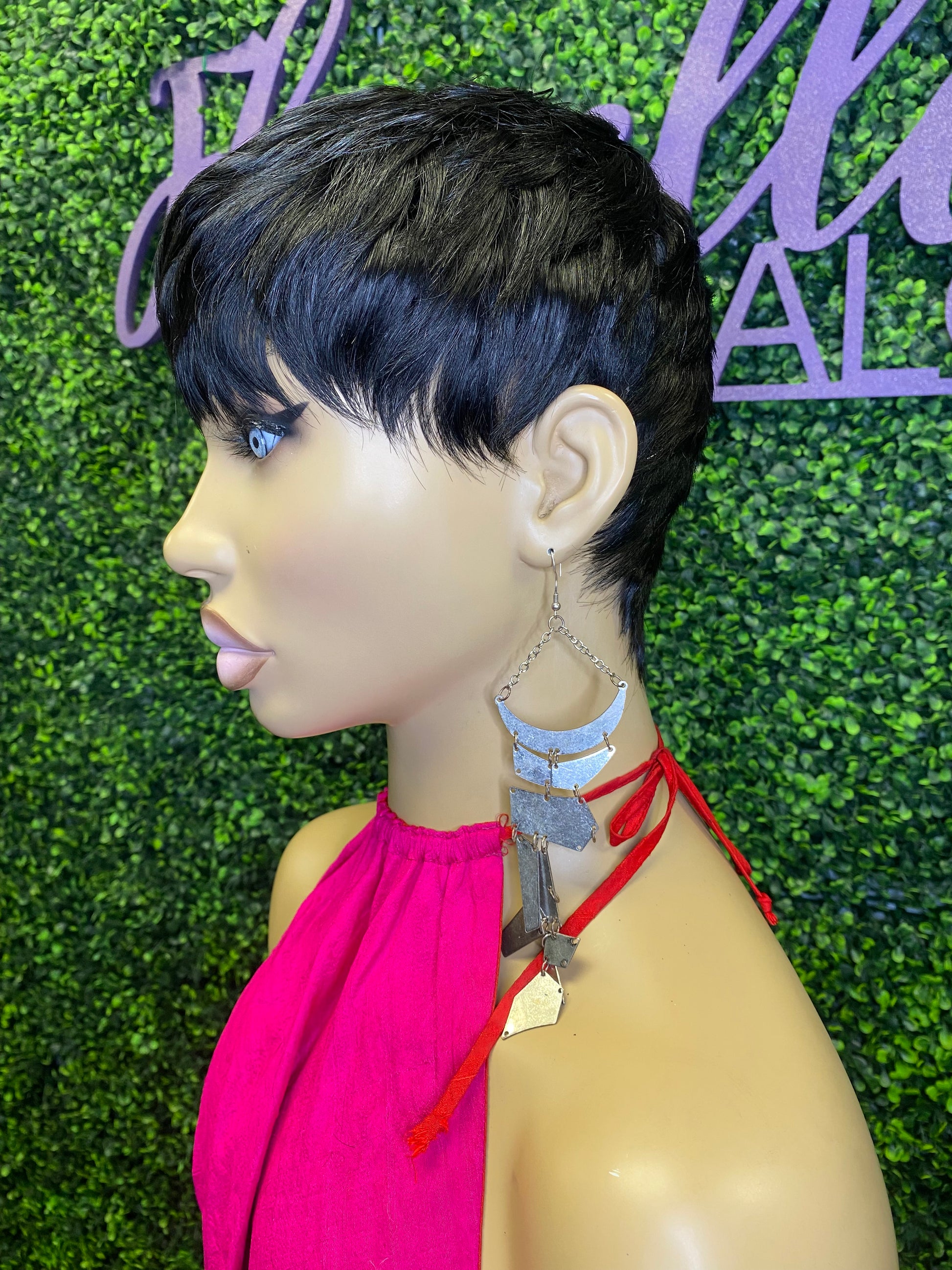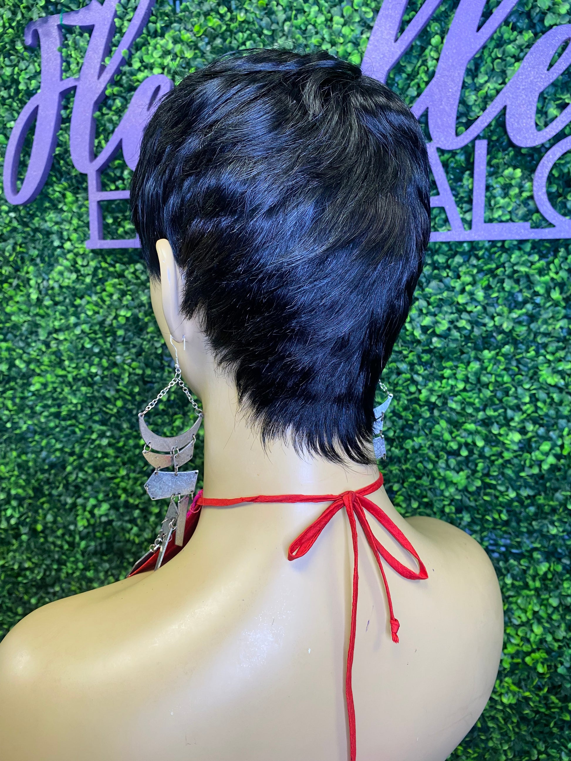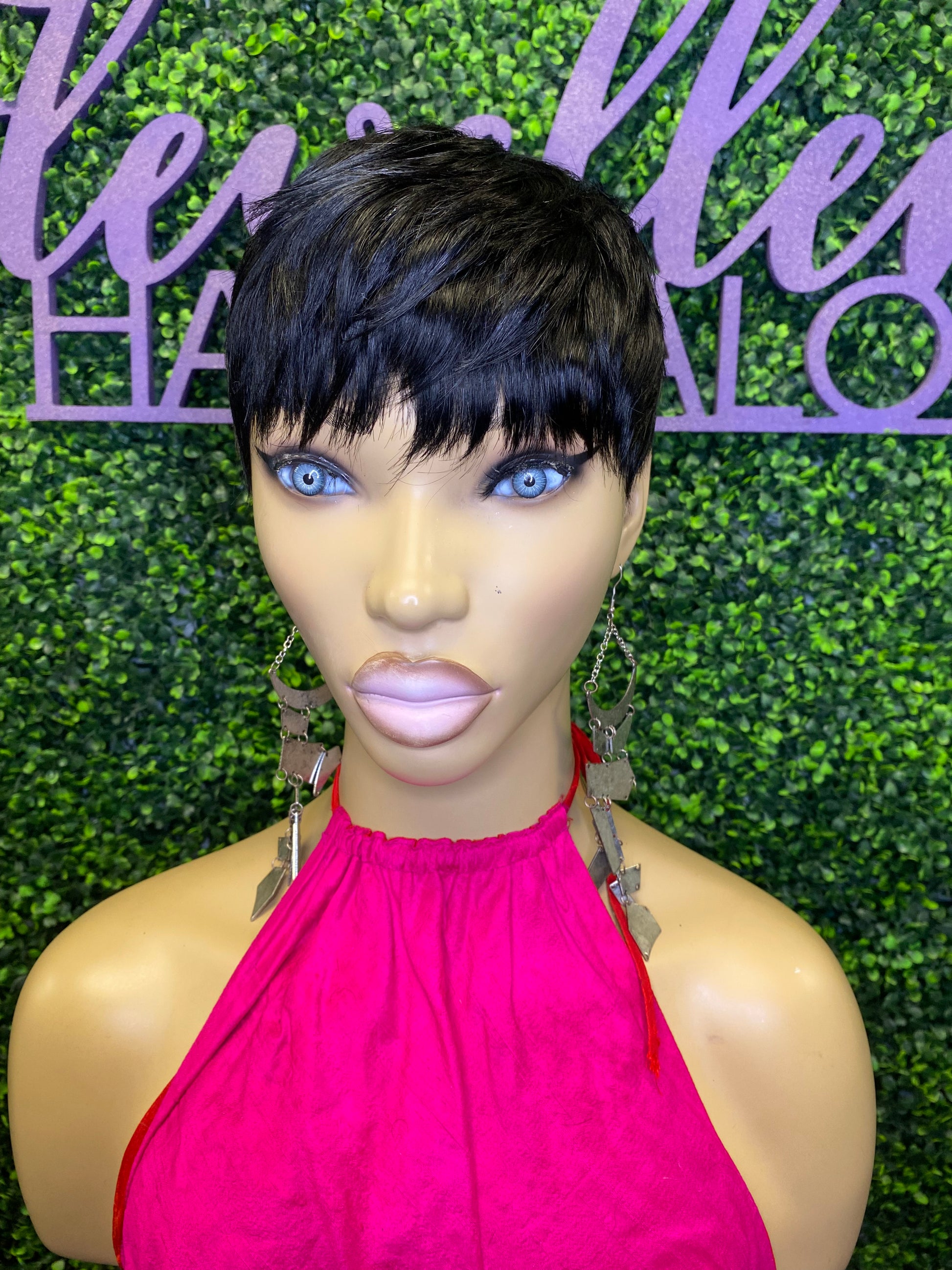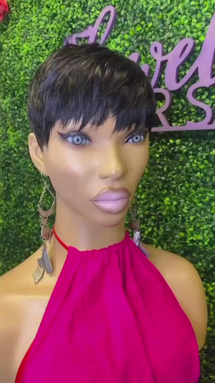 PEYTON Quick Weave "Topper" Pixie, Black full coverage front to back, standard size 22"head for Alopecia complete hair loss (bald) And short hair 1/2 inch to 1 inch to hold clips. Made with 100% human hair on a stretchy breathable cap with or without clips (specify when ordering) can be: bonded down, taped down, or sprayed down with adhesive spray Little to no maintenance-easy to attach and remove..Just clip on and GO! Perfect for vacation or as a bad hair day back up.. whatever you need it for we got you, get yours today✨