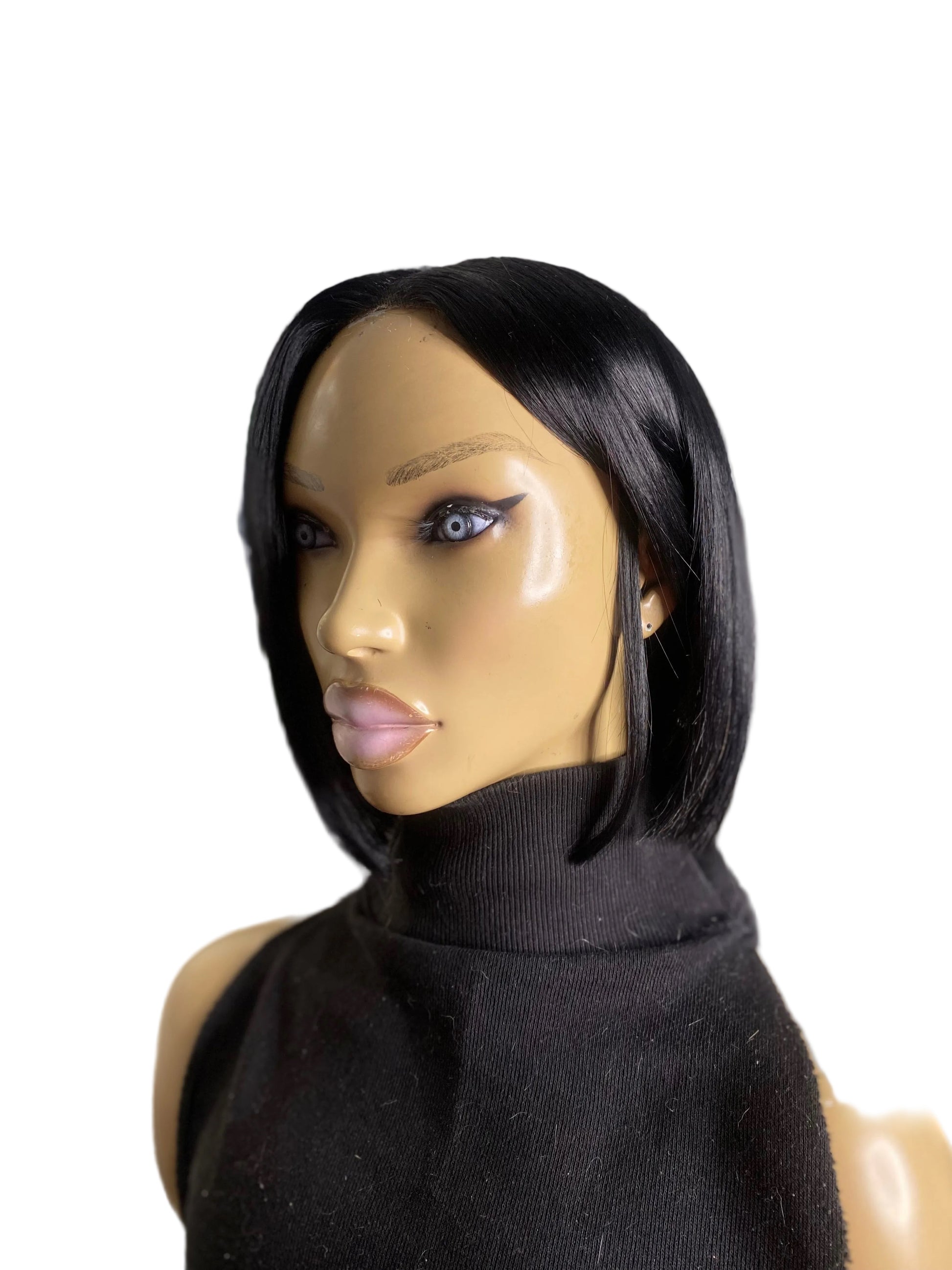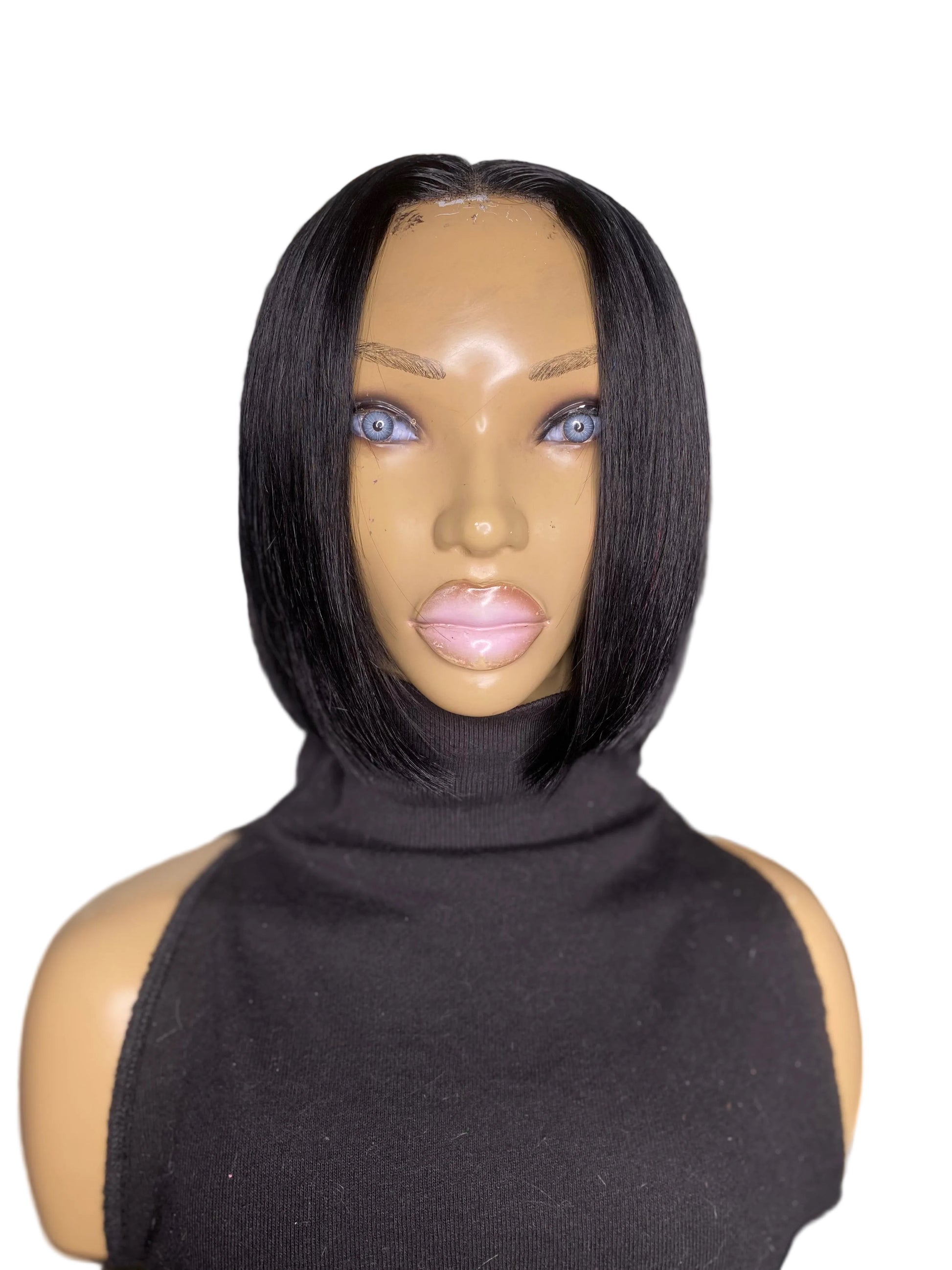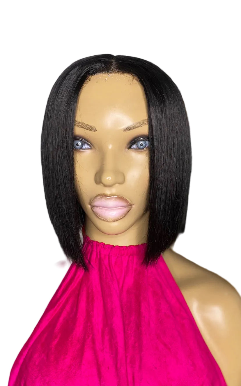 MEGAN Quick Weave "Topper" Bob cut 8x10 Black #1 with 2x6 Middle closure for Short Hair, Thinning Crown,hair loss made with 100% human hair, bonding glue on a breathable stretchy cap, with or without clips and bonding glue, sew down, double sided tape, adhesive spray or both for extra hold, Easy to attach and remove.. Clip on & Go!